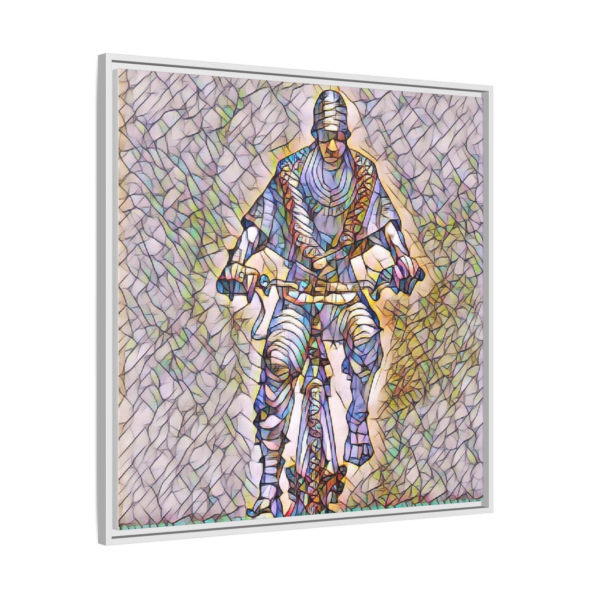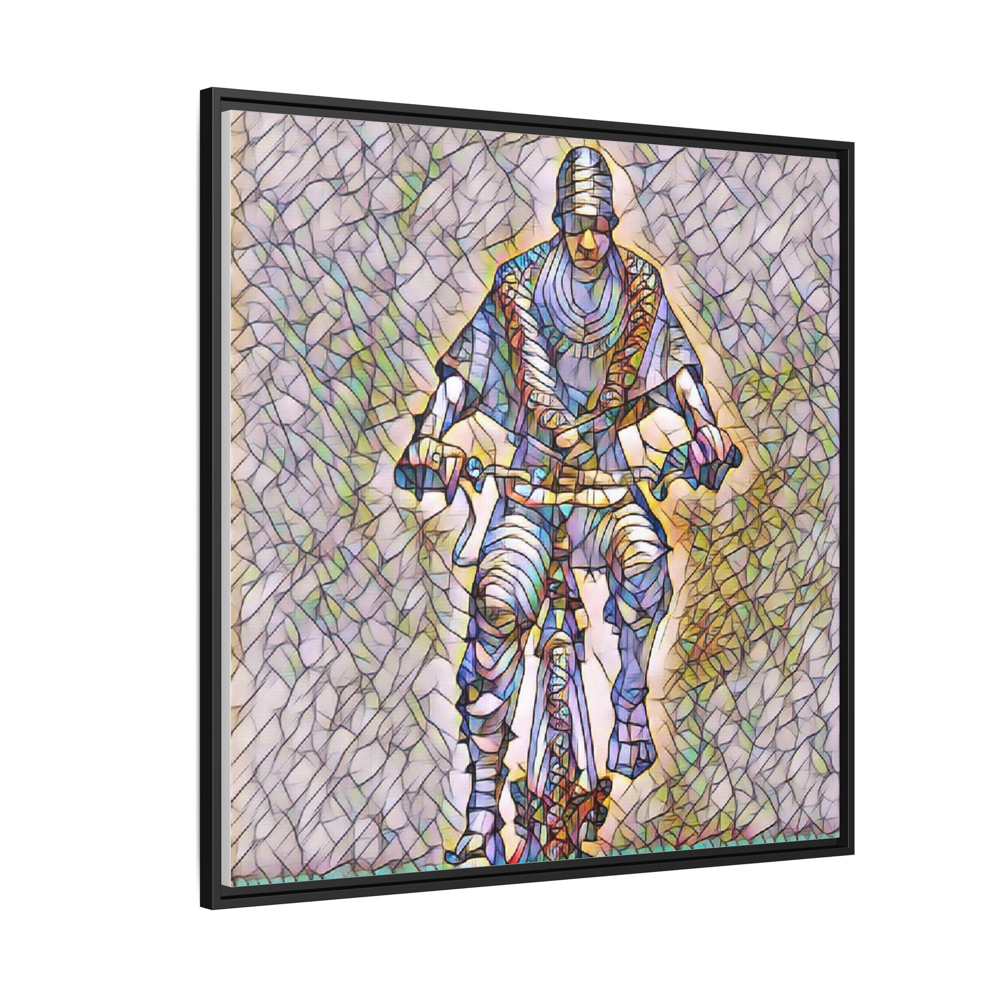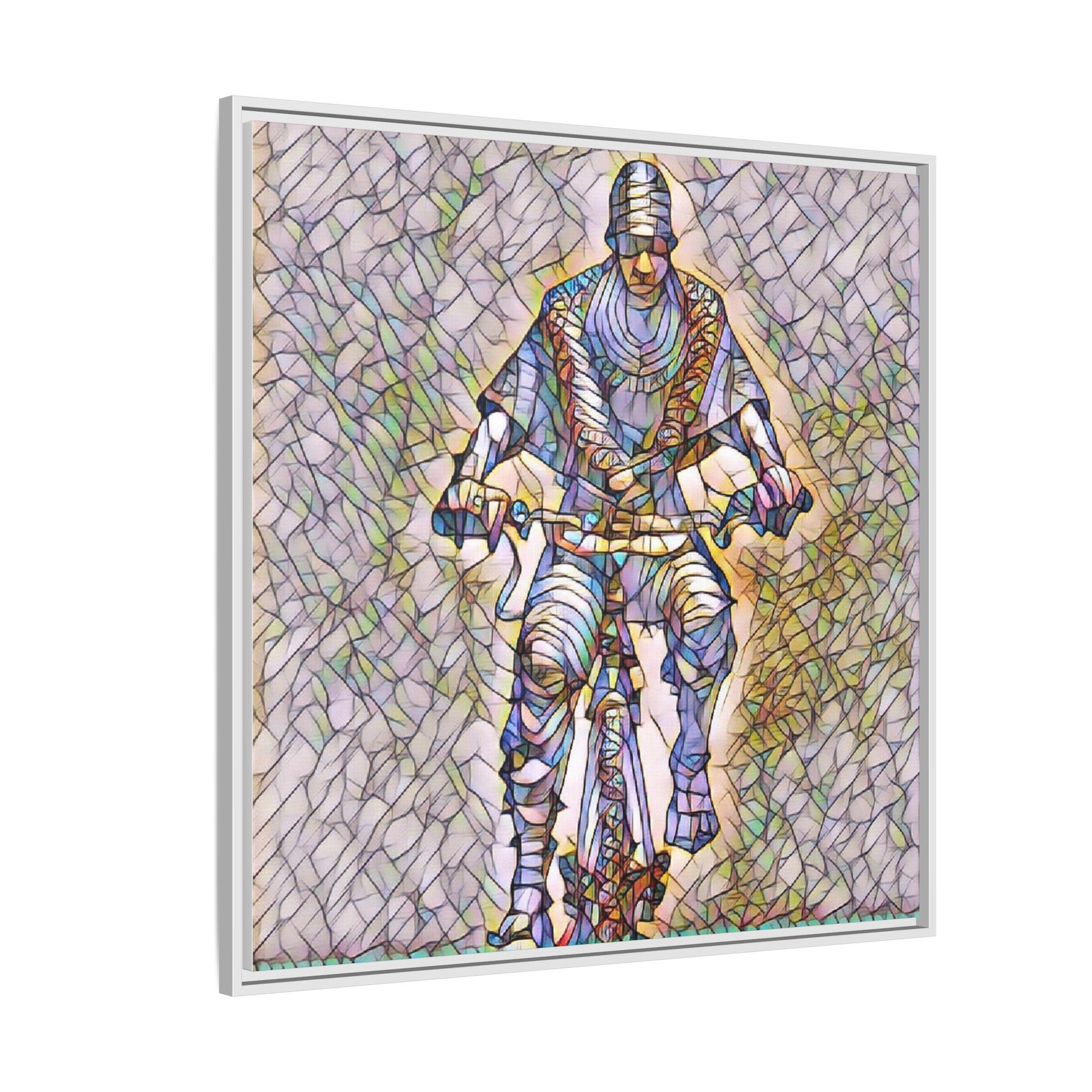 Framed Matte Canvas Art - Stylized Cyclist Illustration