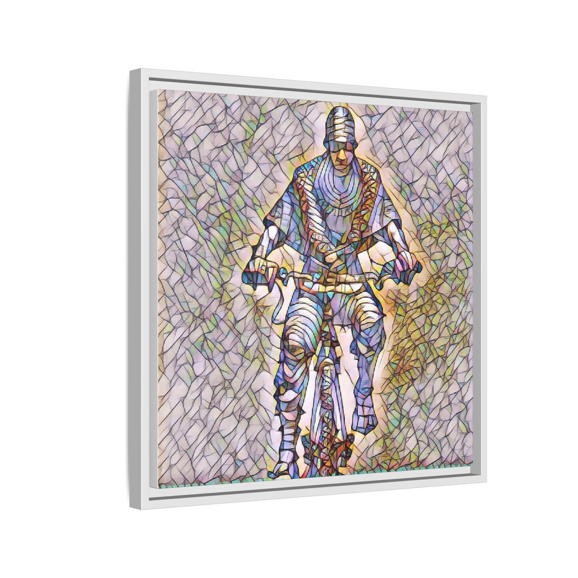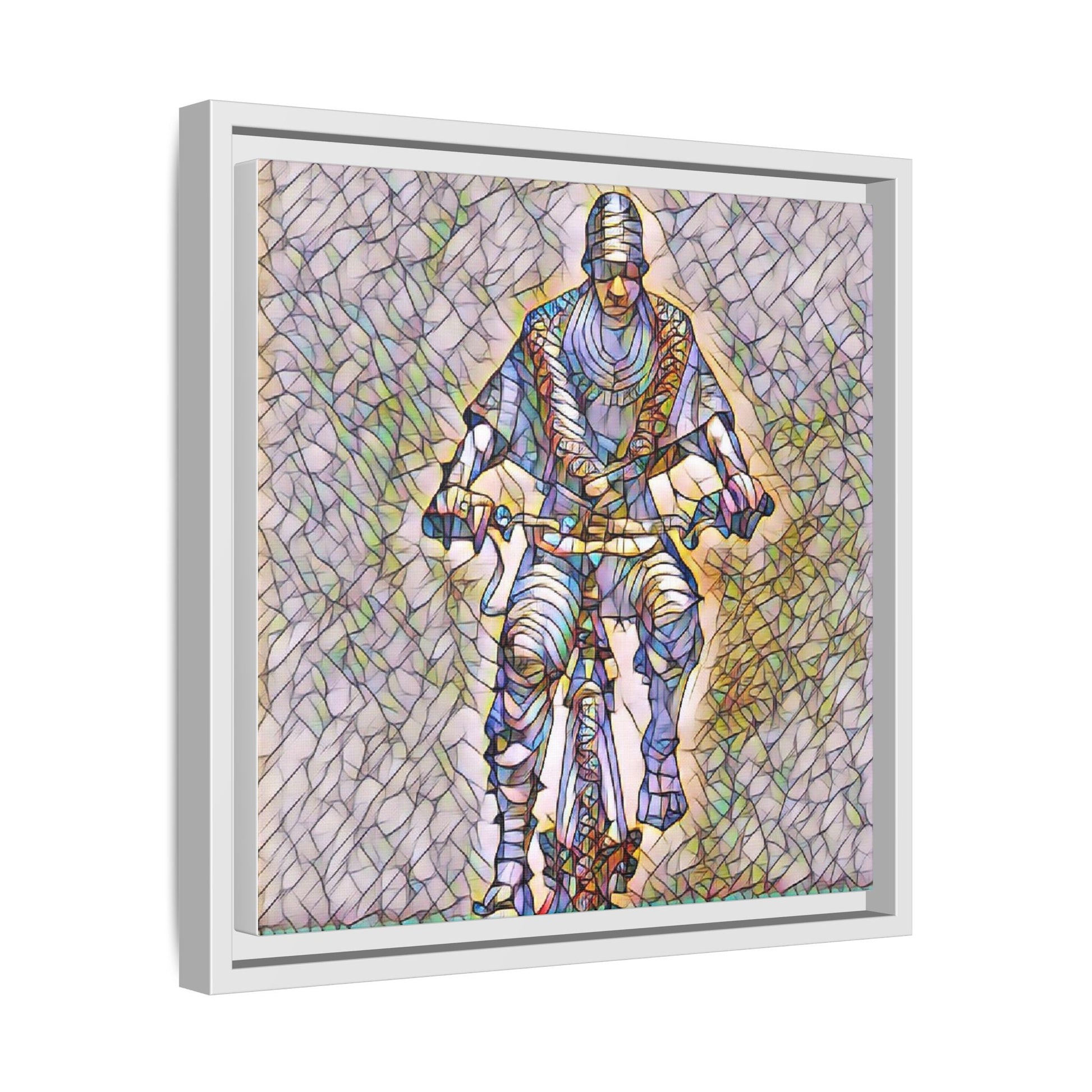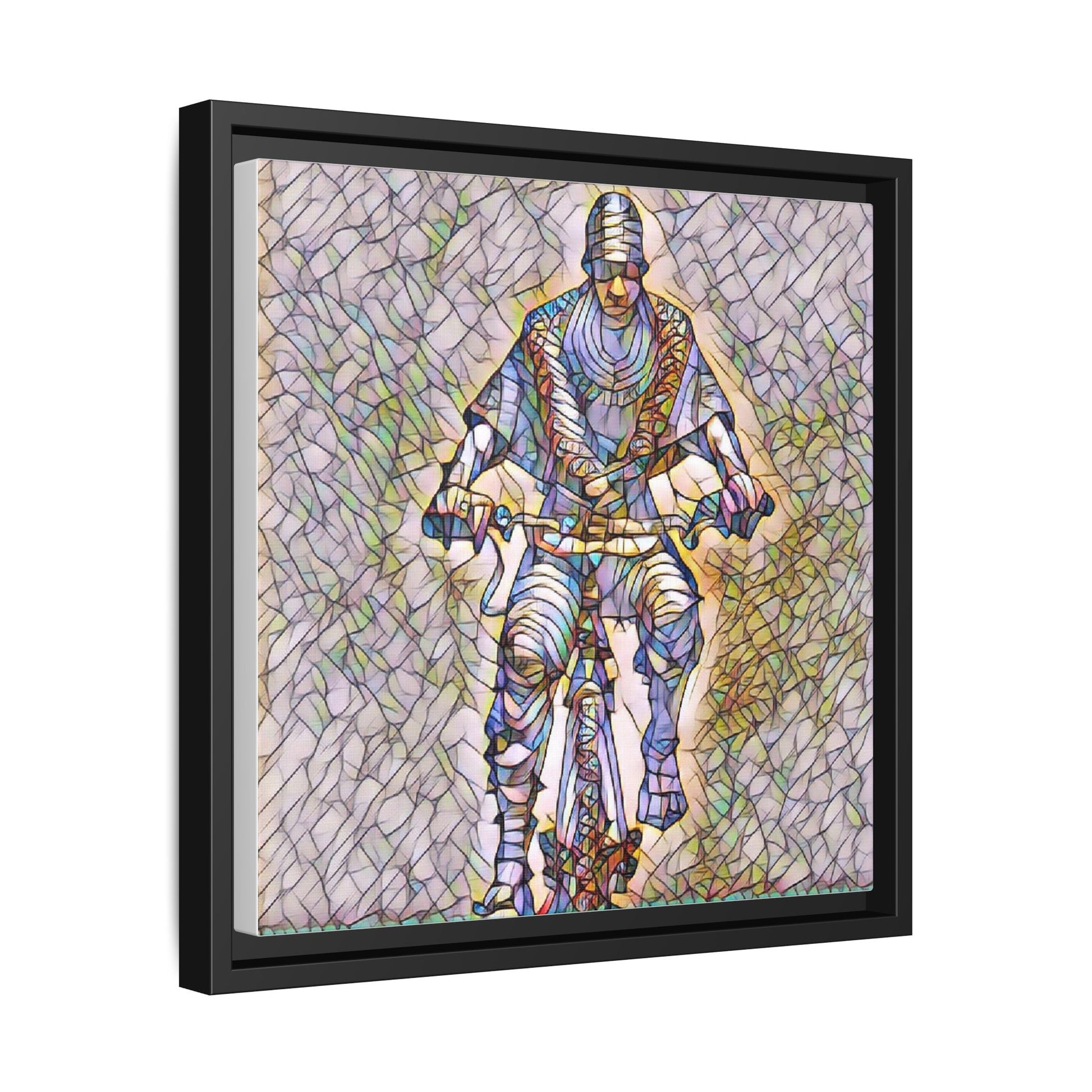 Framed Matte Canvas Art - Stylized Cyclist Illustration