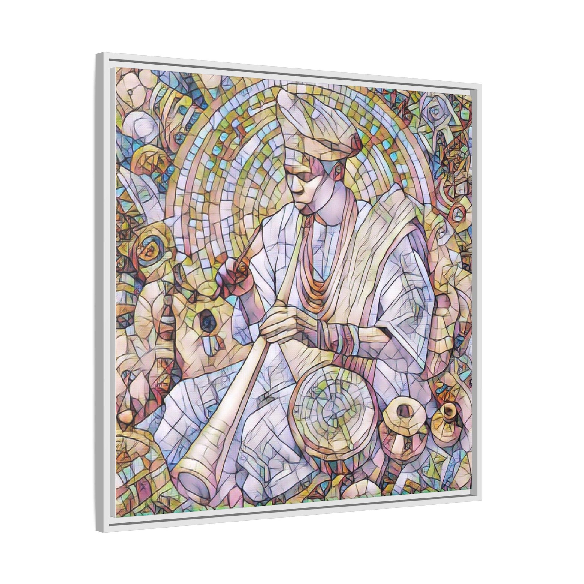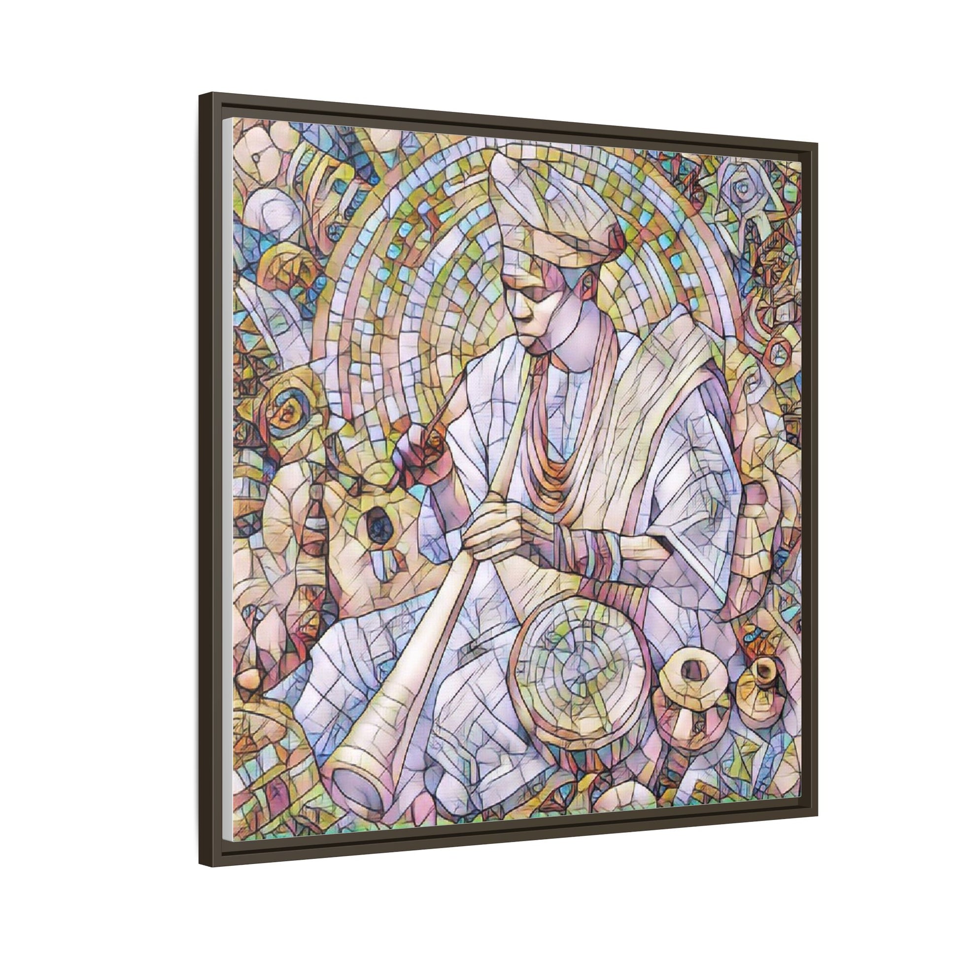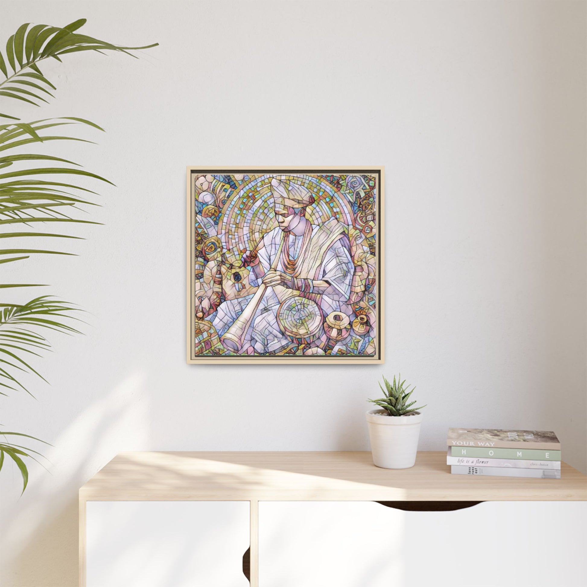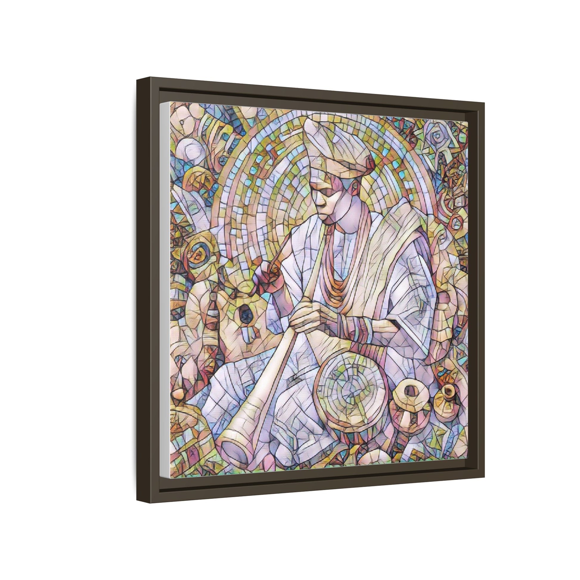 Framed Matte Canvas Print — African Drummer Mosaic Art