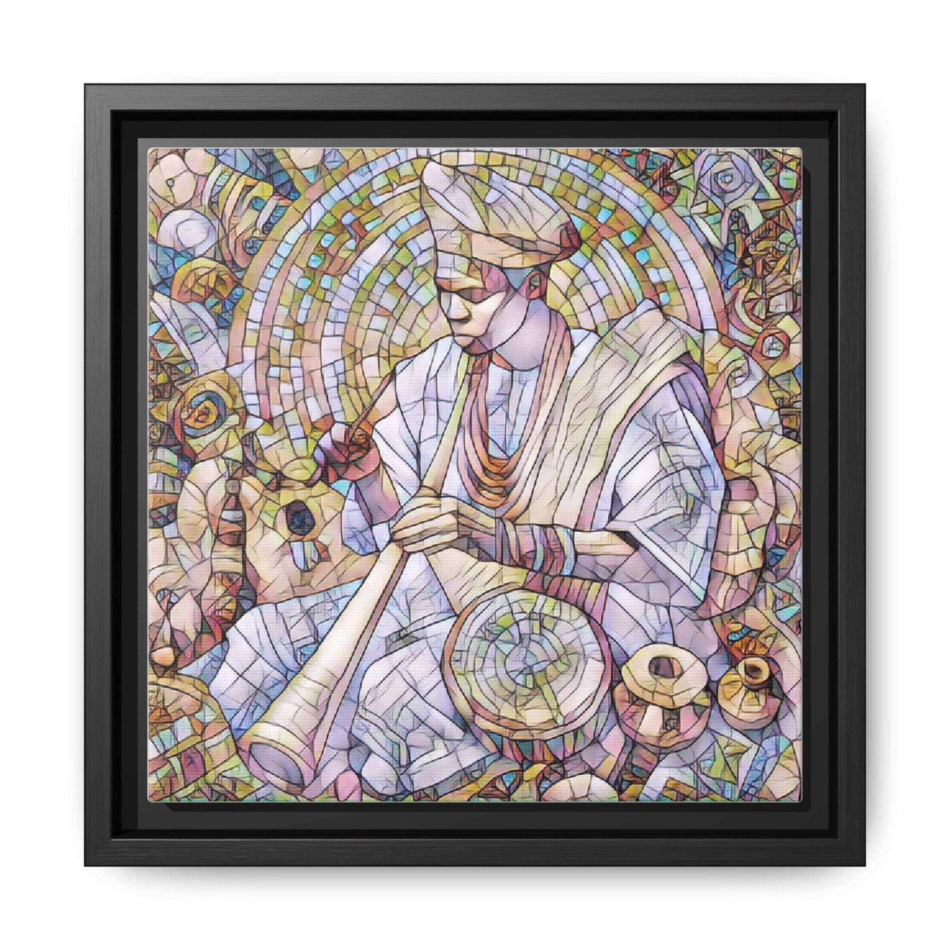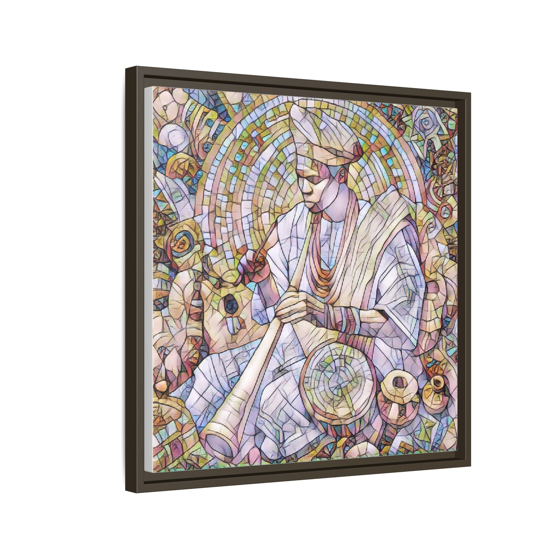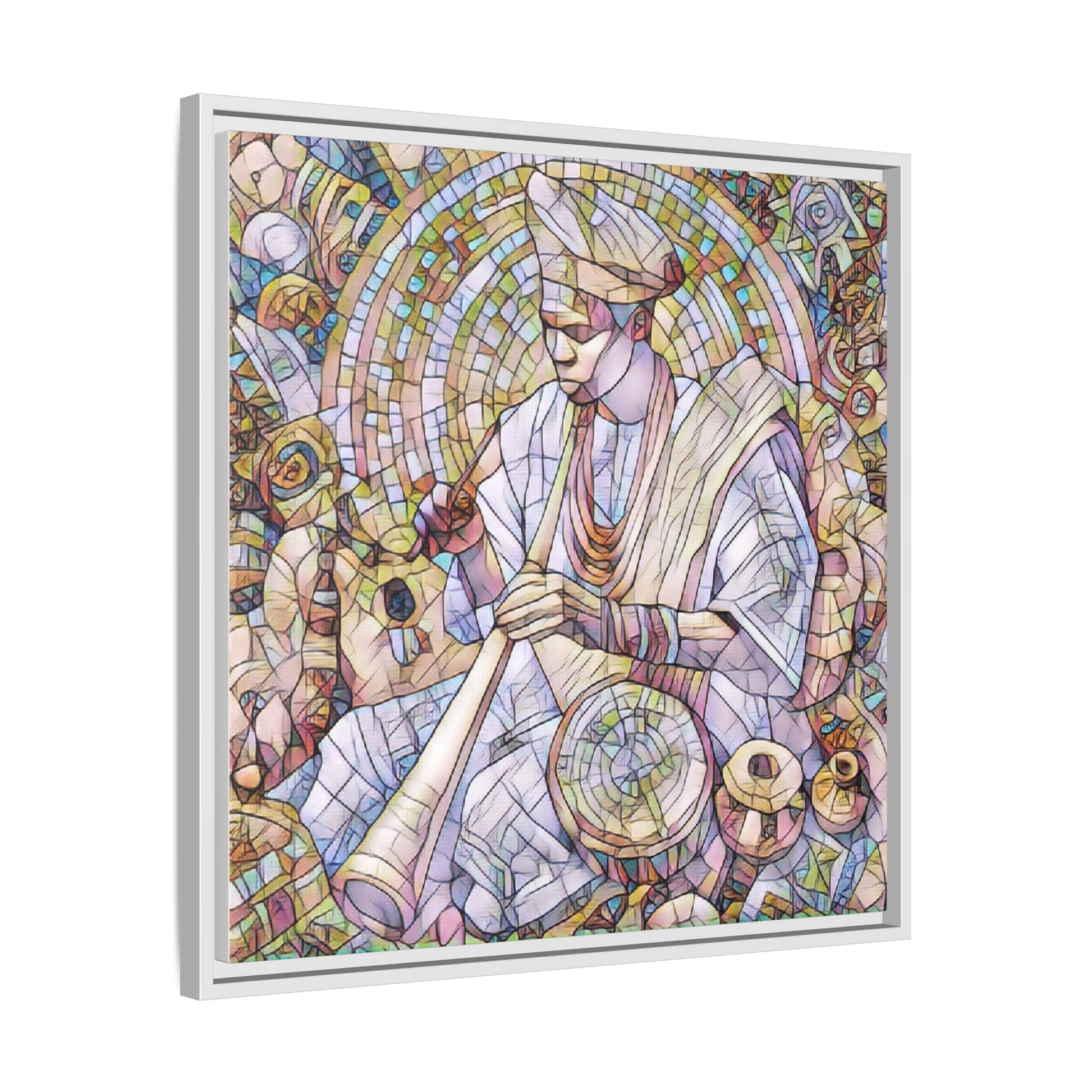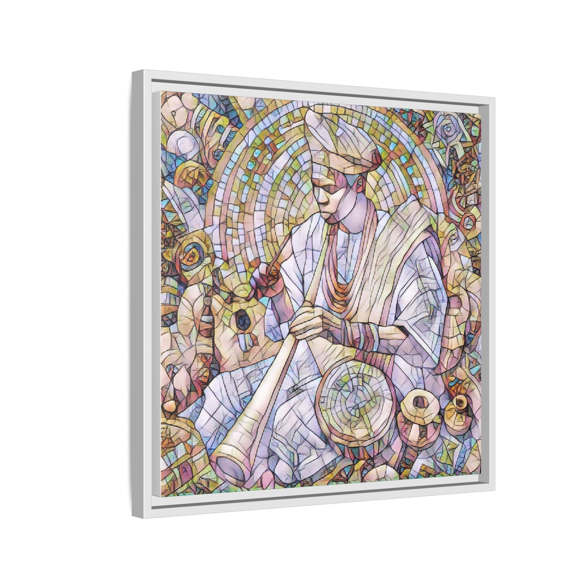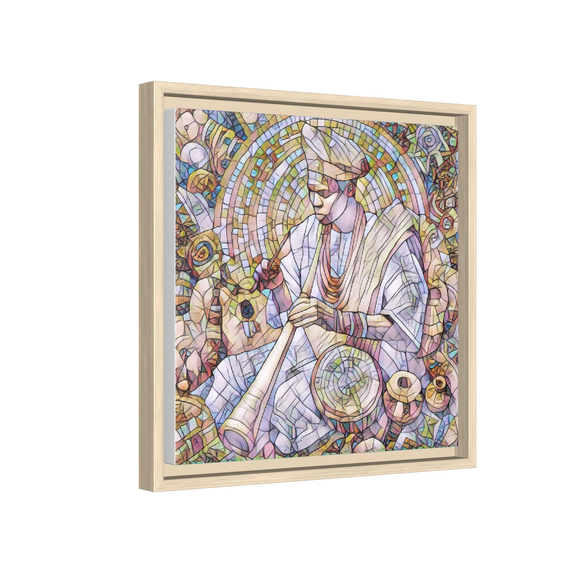 Framed Matte Canvas Print — African Drummer Mosaic Art