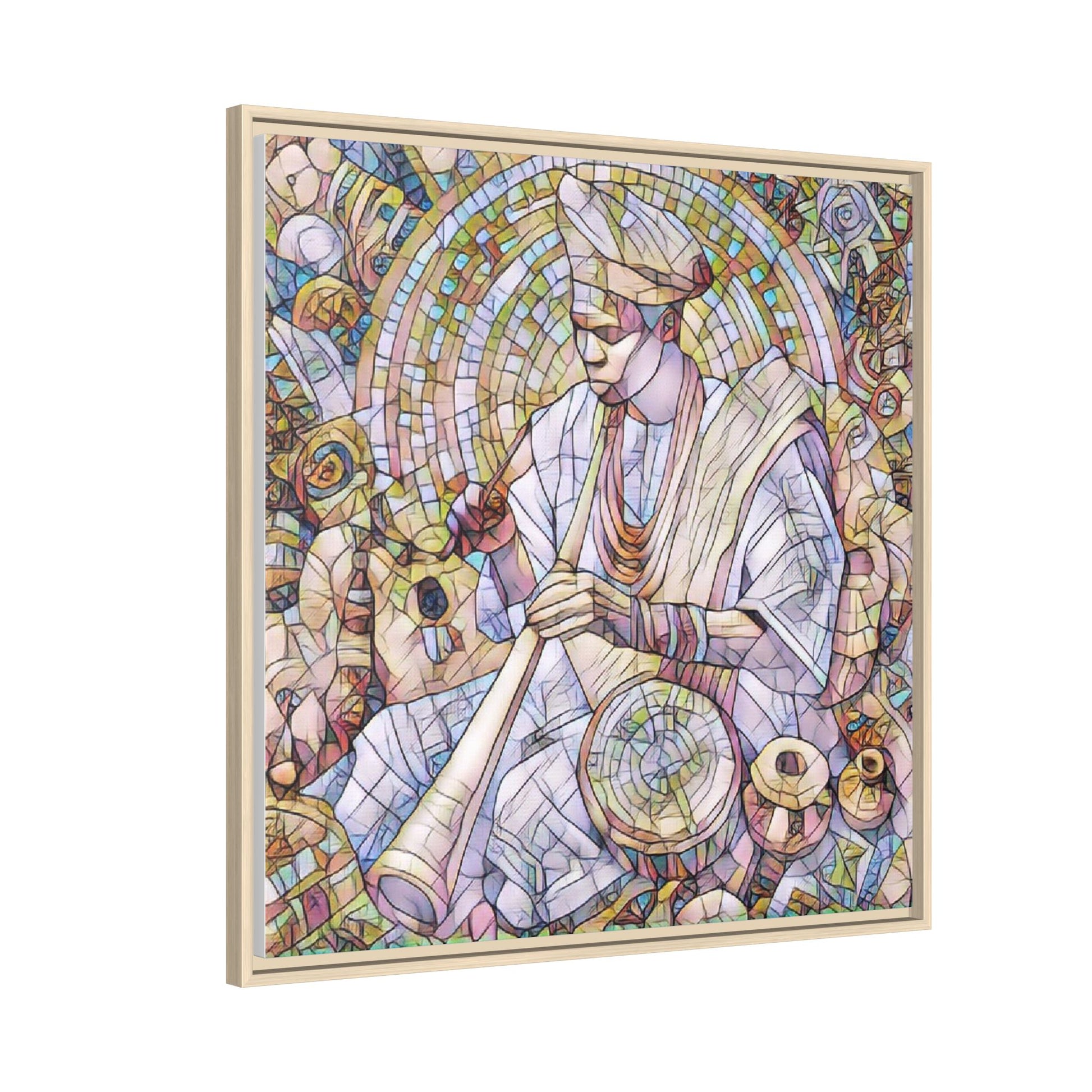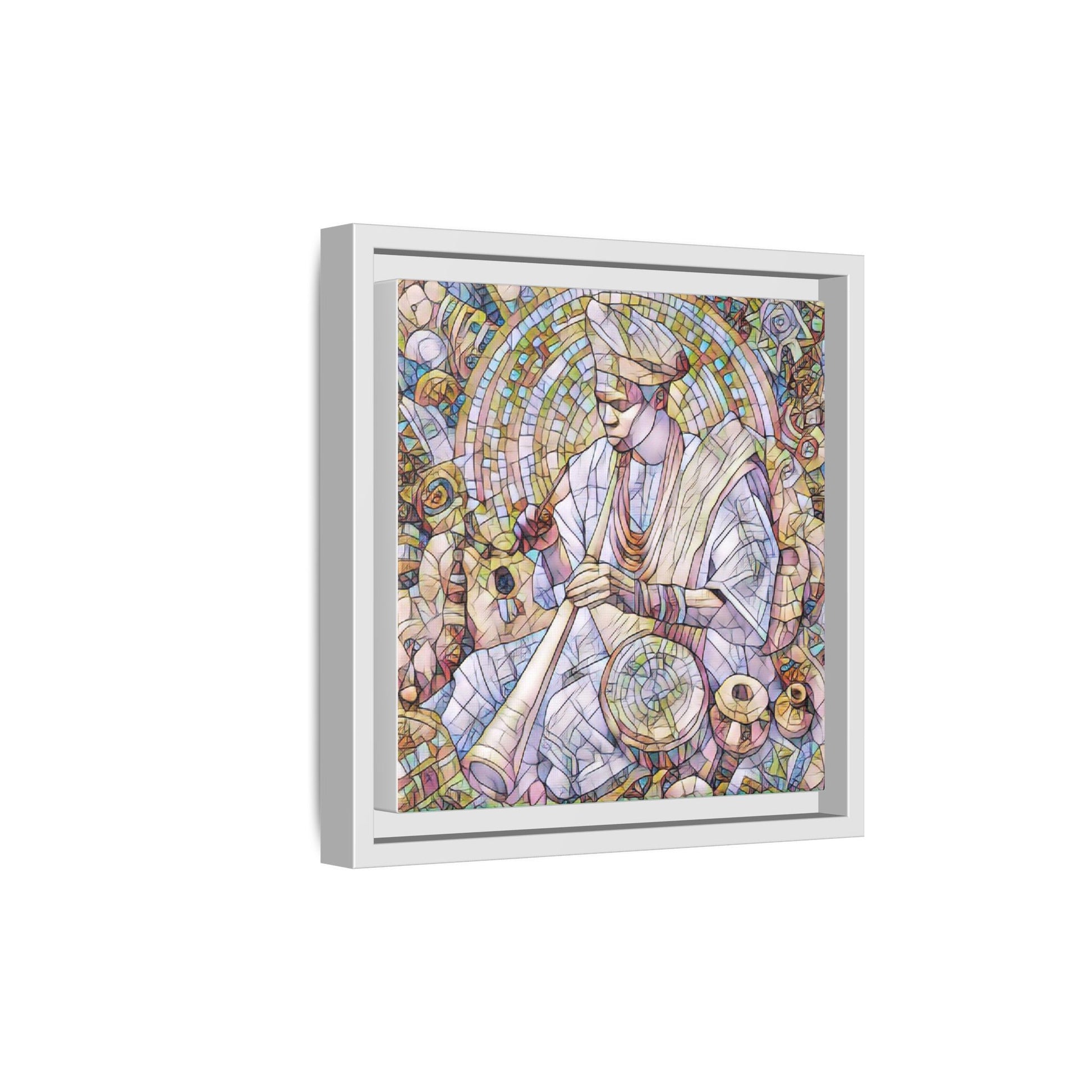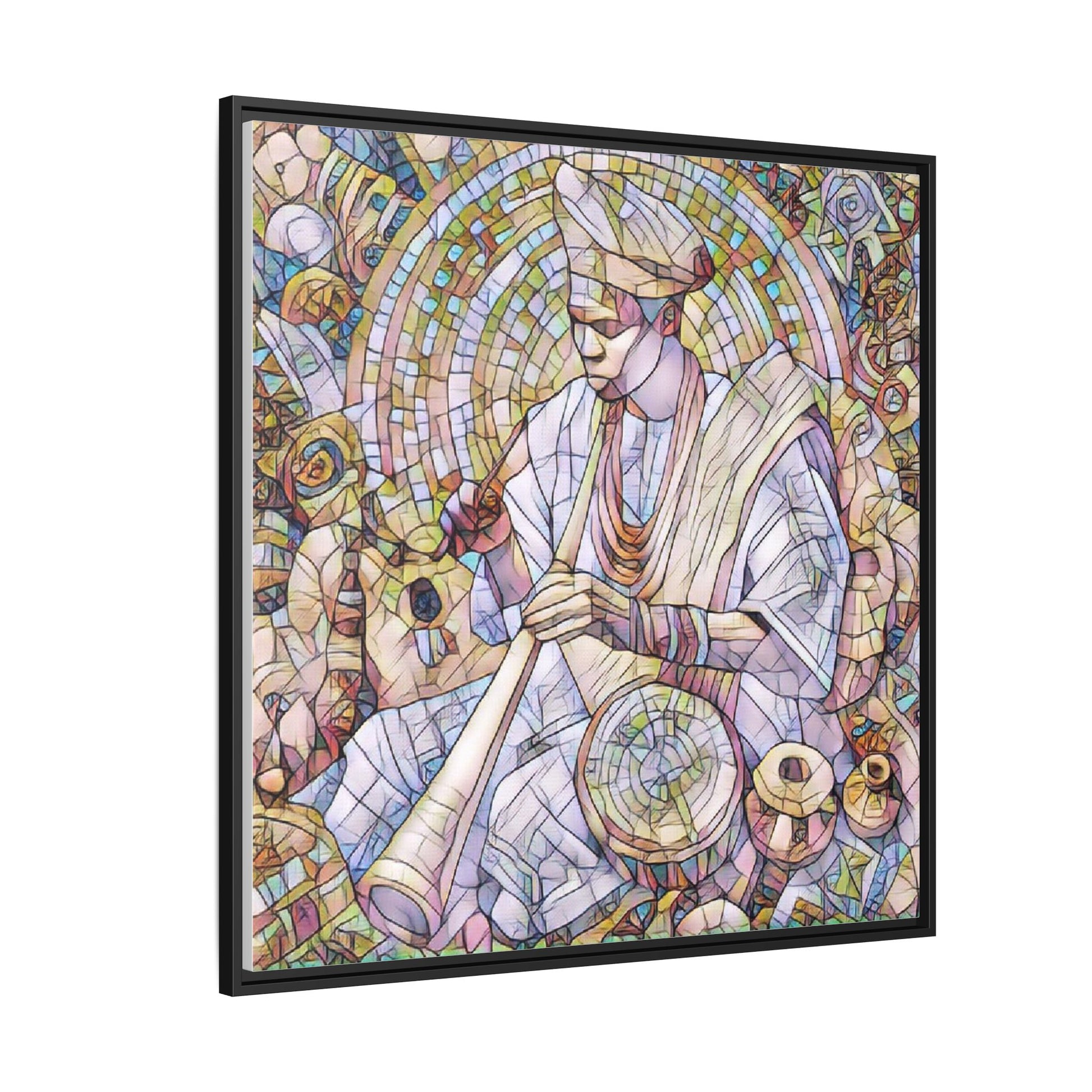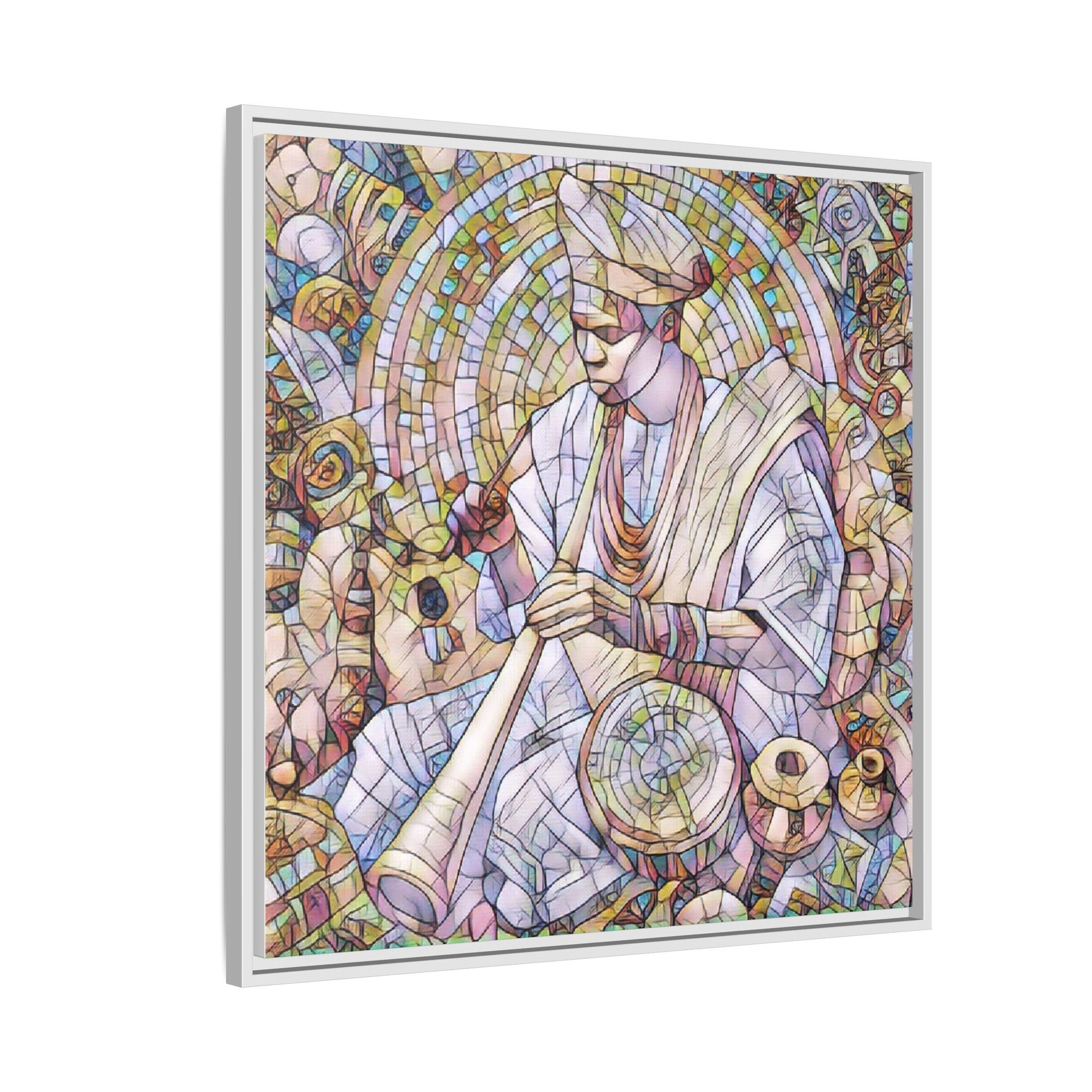 Framed Matte Canvas Print — African Drummer Mosaic Art