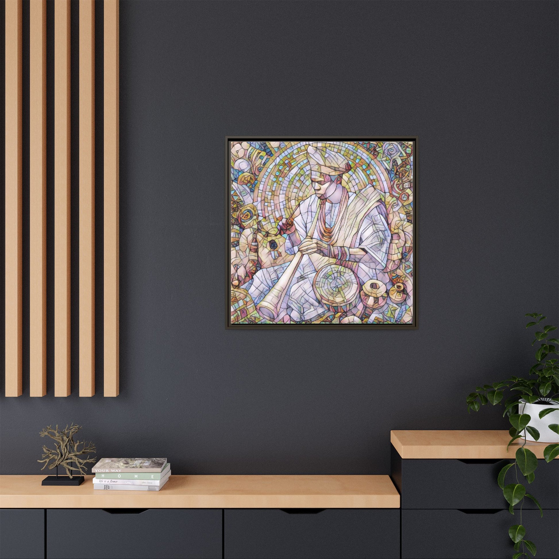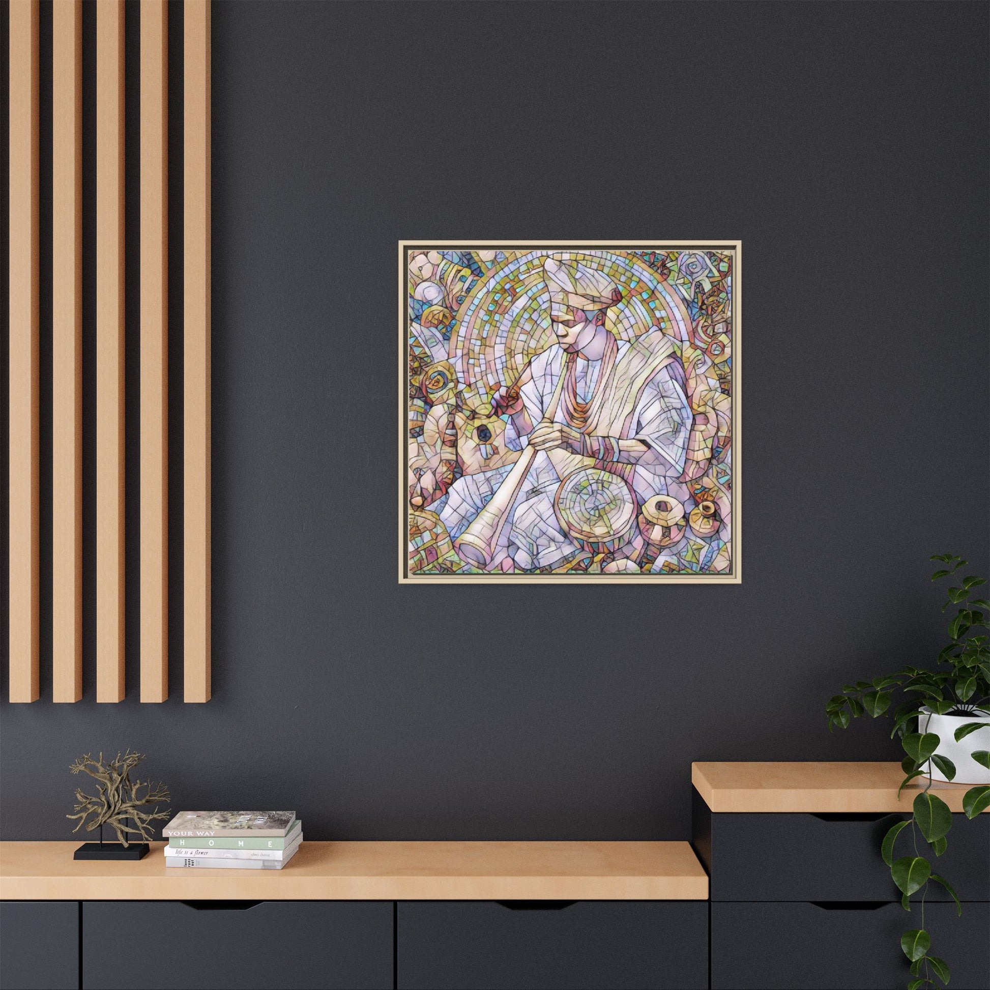 This framed matte canvas brings a warm, handcrafted feeling to any room. The artwork — a mosaic-like depiction of a musician with soft pastels and golden highlights — feels like a quiet celebration of craft and tradition. Mounted on a slim pine frame with a refined matte coating, the print keeps reflections low while letting subtle color transitions and delicate linework breathe. It hangs easily with sawtooth hardware and arrives ready to sit above a console, beside a reading chair, or as a calming focal point in a music or study corner.