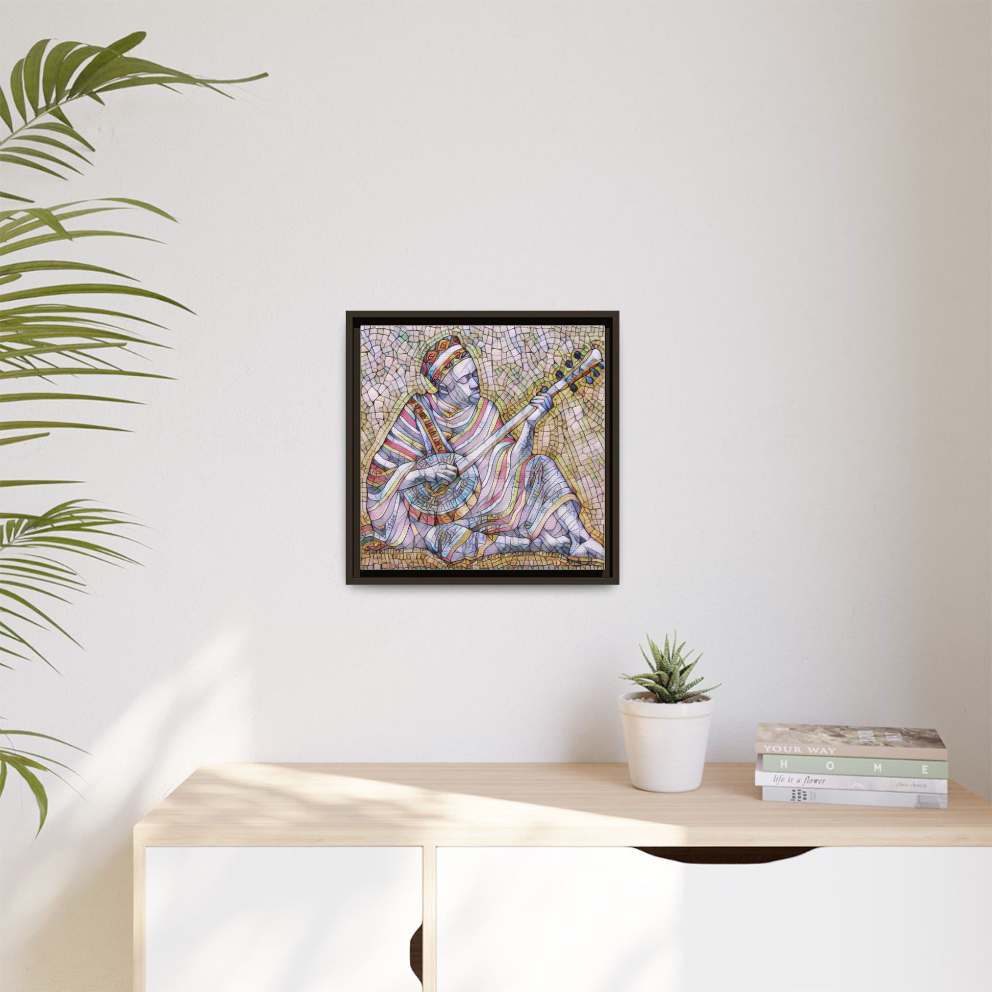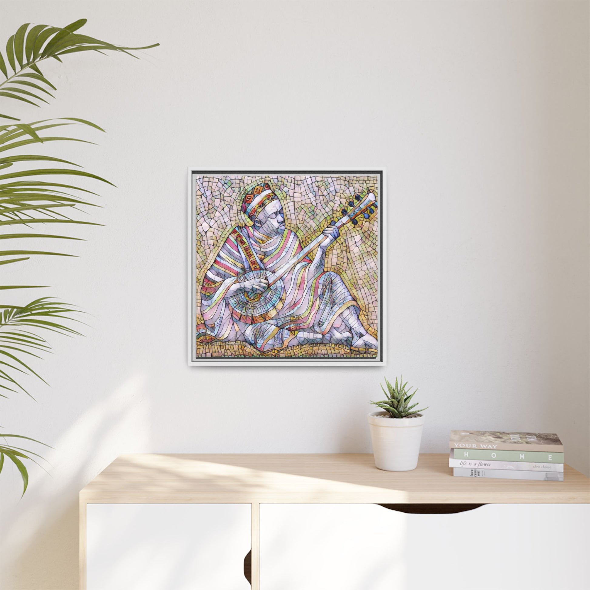 Framed Mosaic Musician Canvas – Colorful Bohemian Wall Art